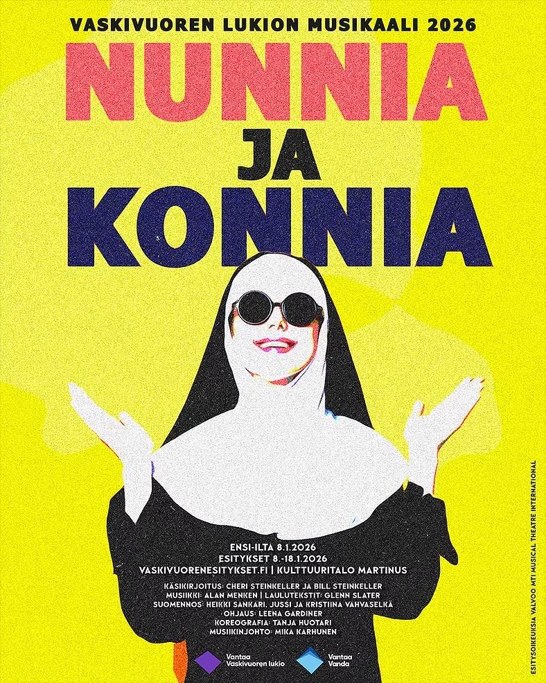Vaskivuoren lukion vuoden 2026 musikaali Nunnia ja konnia on hyväntuulinen musikaalikomedia, joka kertoo tarinan Deloris Van Cartier’sta, räväkästä laulajattaresta, joka joutuu henkirikoksen…