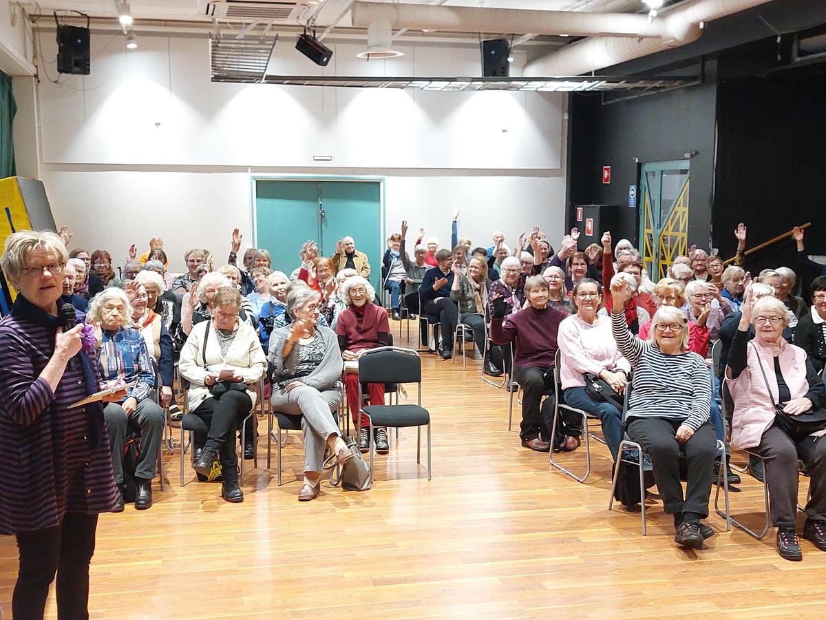 Torstaitapaamisessa 20.11. MESin ensimmäisessä Elämäni biisi -esityksessä kuultiin musiikkia ja elämäntarinoita ja yleisö pääsi myös arvailemaan, mikä biisi kuului kenellekin. Tältä se näytti esiintymislavalta katsoen - hauskaa oli kaikilla. Välillä vähän surullistakin, niinkuin elämä on.