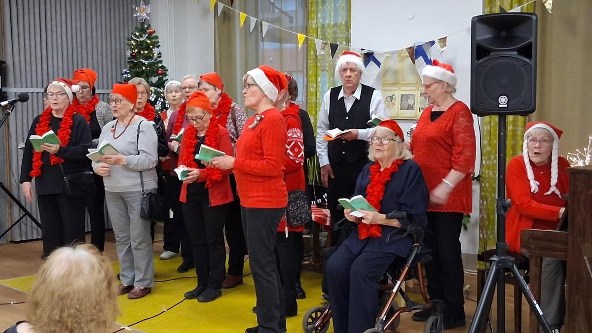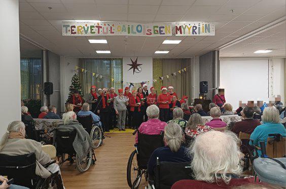 Ystäväpiirin ja kerhon kuoro vei jouluterveiset laulun ja leikin muodossa Vanhustenkeskuksen Kuusijuhlaan. Osallistuimme myös tarjoiluun ja asukkaiden kuljetukseen usean vapaaehtoisen voimin.